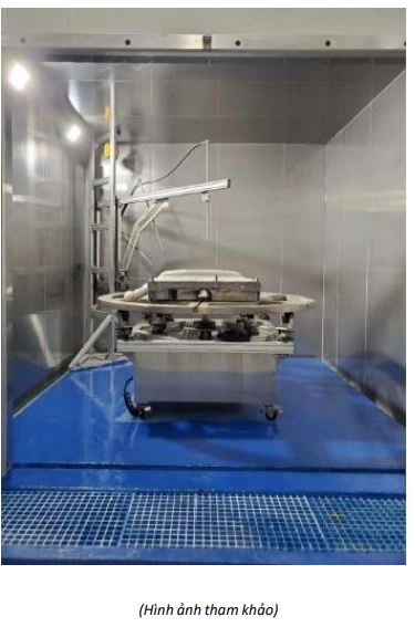 1. Đường kính bàn thử nghiệm: E 3.000mm 2. Tốc độ quay bàn thử nghiệm: 5±1rpm 3. Độ chịu tải bàn thử nghiệm: ≤2000Kg 4. Chiều cao bàn thử nghiệm từ sàn: 1300mm |